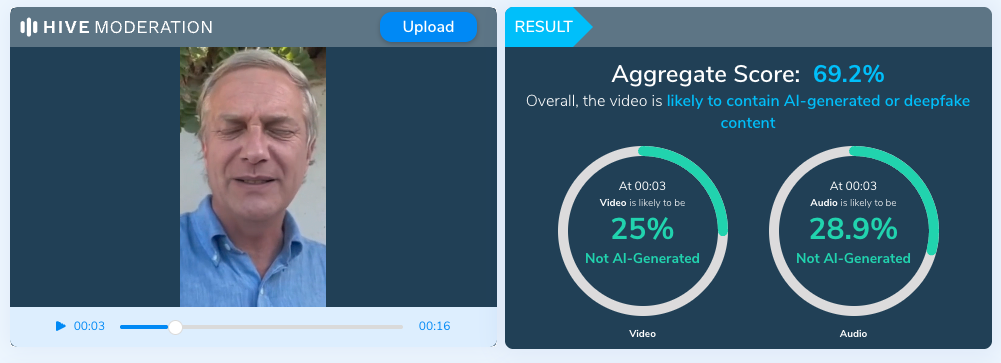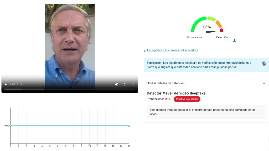 Para detectar eventual manipulación del video con inteligencia artificial, se hicieron análisis con diversos motores.
