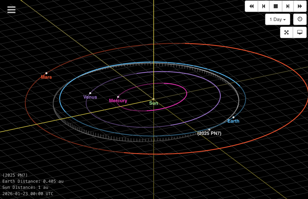 De todas maneras, se descubrió que el asteroide 2025-PN7 está en la «Database de Cuerpos Menores» de la agencia estatal estadounidense. La NASA define estos objetos como «todos los cuerpos naturales que no son un planeta o un satélite natural» —es decir, que no son lunas—.