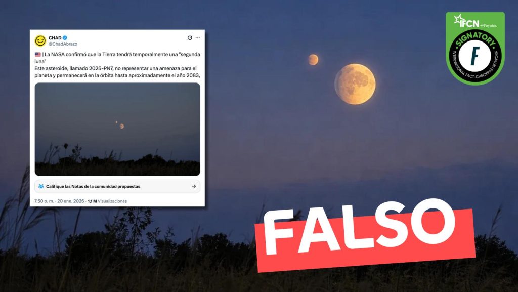 Fast Check califica este contenido como #Falso. No existen reportes oficiales de la NASA que se refieran al asteroide 2025-PN7 como una «segunda luna» que tendrá la Tierra. El objeto no cumple las características para ser denominado de esta forma, según el Premio Nacional de Ciencias, José Maza, y el investigador del centro CATA, César Fuentes.