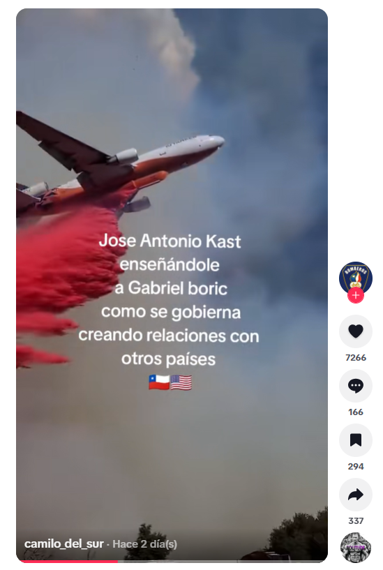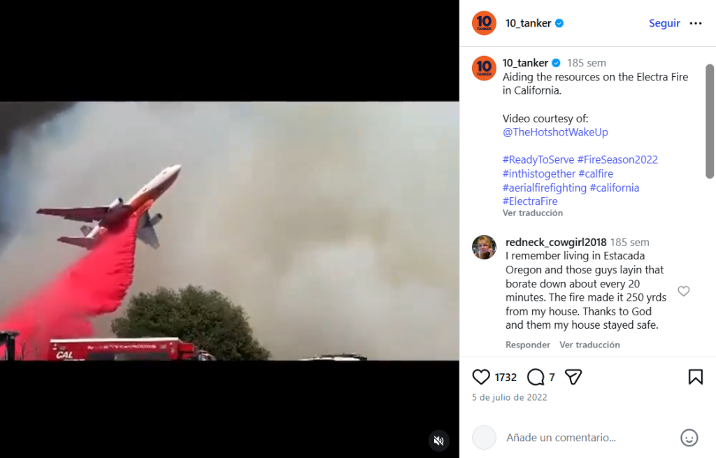 Fast Check, en primer lugar, revisó la cuenta de Instagram @10_tanker, cuenta oficial de la aeronave. En este perfil público se publican registros de las diferentes operaciones del avión. Tras una búsqueda en el feed de la cuenta oficial se dio con el video y descripción del evento ocurrido originalmente, que se difundió como si hubiese ocurrido en Chile.