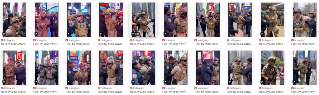 Fast Check realizó una búsqueda avanzada de Google con palabras exactas en inglés como: «Arrest», «NYPD», «ICE» y «Times Square». La búsqueda arrojó una nota informativa del medio estadounidense ‘Gothamist‘ afirmando que este tipo de videos son generados por inteligencia artificial.