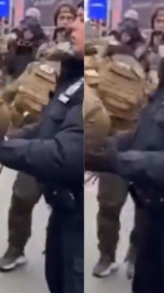 Al principio del clip, detrás de los federales que protagonizan la escena, se puede ver como intentan detener a otro agente del ICE, pero este se desprende de la captura y justo en ese movimiento su chaqueta se voltea y su cuerpo se deforma.