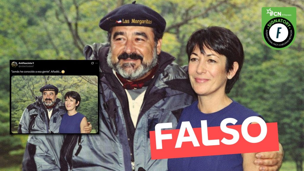 Circula una imagen en X que supuestamente muestra a Andrónico Luksic junto a Ghislaine Maxwell, esposa del fallecido Jeffrey Epstein. Fast Check calificó esto como #Falso, pues se editó una imagen real del empresario chileno junto a su madre y se reemplazó por Maxwell.