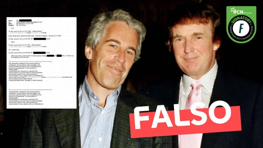 • Nota de Maldita.es: “No, este correo de Epstein diciéndole a un interlocutor que no lleve chicas negras porque “Trump estará allí” no es real: no aparece entre los correos publicados por el Departamento de Justicia de EEUU”