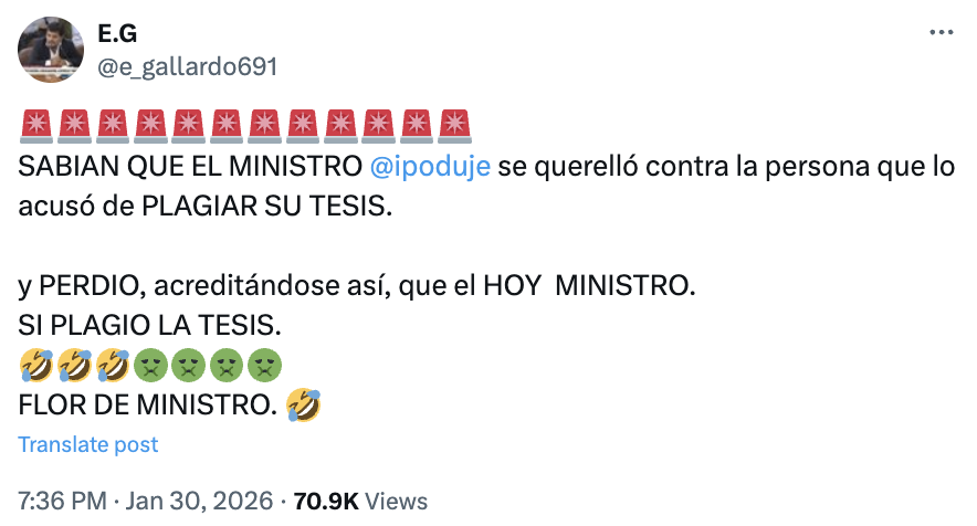 Por haber perdido el juicio, se acreditó que Poduje sí plagió su tesis: #Falso