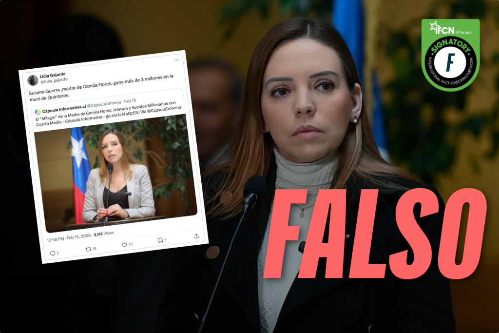 Fast Check califica este contenido como #Falso. La madre de la senadora electa Camila Flores (RN) no se llama Susana Guerra, sino Verónica Oporto. Además, las planillas de personal de la Municipalidad de Quintero no muestran a ninguna persona con dichos nombres. Desde la casa edilicia confirmaron esta información.