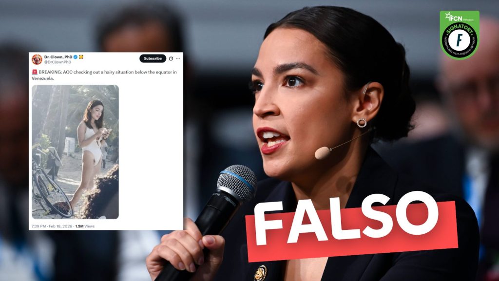 Fast Check califica este contenido como #Falso. La imagen que muestra a la congresista estadounidense Alexandria Ocasio-Cortez en traje de baño fue manipulada artificialmente, ya que el registro original corresponde a un video de otra mujer. Herramientas de inteligencia artificial confirmaron la alteración y el propio autor de la publicación compartió el video real.