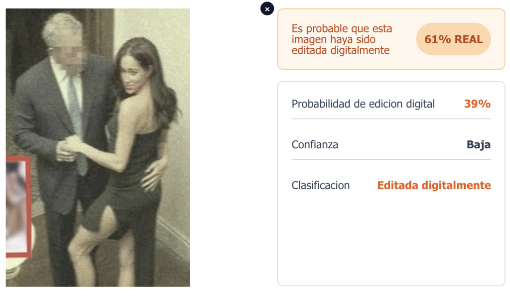 InVID concluyó que existen 73% de probabilidades de que la imagen sea generada por esta herramienta. Otros softwares –como Undetectable IA y Zero GPT– fueron menos concluyentes, pero sin descartar la posibilidad, con 39% de certeza.