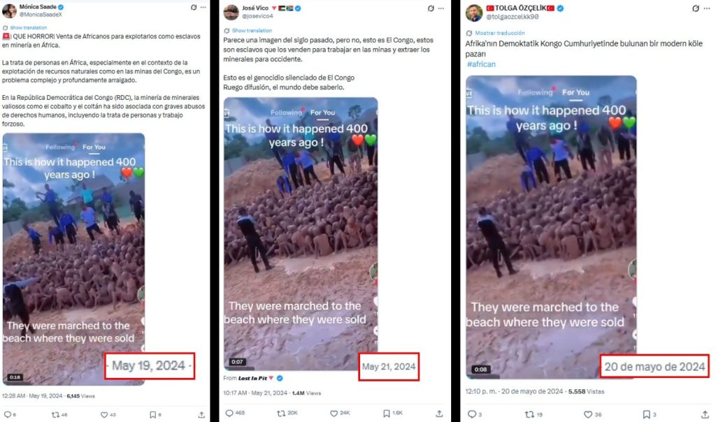 En primer lugar, Fast Check realizó una búsqueda inversa a través de Google Lens utilizando una captura de pantalla del registro. La pesquisa arrojó diversas publicaciones en X (1,2,3), con distintas fechas, que vinculan el video con la República Democrática del Congo.