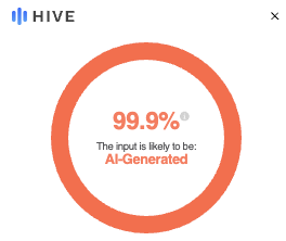 Mismo proceso se realizó en Hive Moderation, plataforma que arrojó un 99.9% de probabilidades de ser sintética.