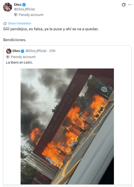 Respecto de lo que s铆 existe informaci贸n, es de un comunicado de la Universidad Iberoamericana Le贸n, ubicada en Guanajuato. En dicha vocer铆a, la casa de estudios desminti贸 la informaci贸n a trav茅s de un comunicado en X, emitido apenas dos horas despu茅s del contenido viral.