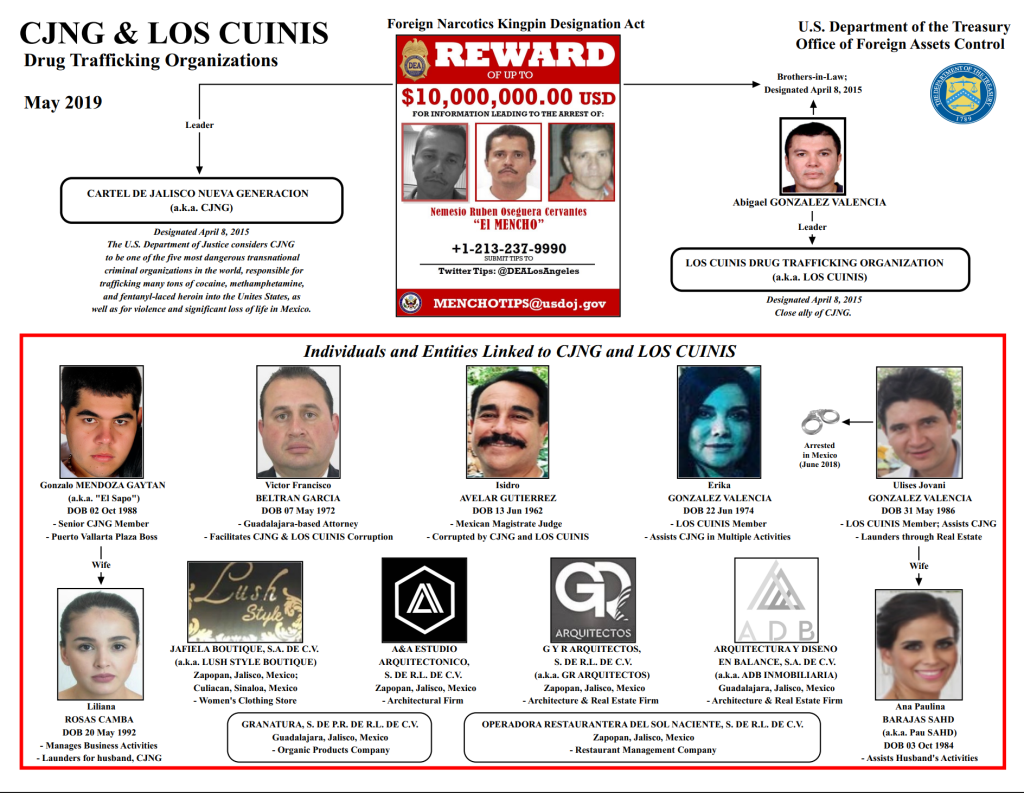 Estructura de “Los Cuinis” y el CJNG. Foto del: Departamento de la Tesorería de Estados Unidos.