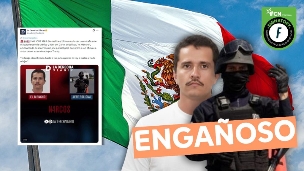 Fast Check califica este contenido como #Engañoso. El audio no es previo ni reciente a la muerte de «El Mencho», corresponde al año 2016. El Gobierno mexicano nunca confirmó que la voz perteneciera al criminal.