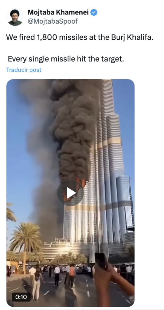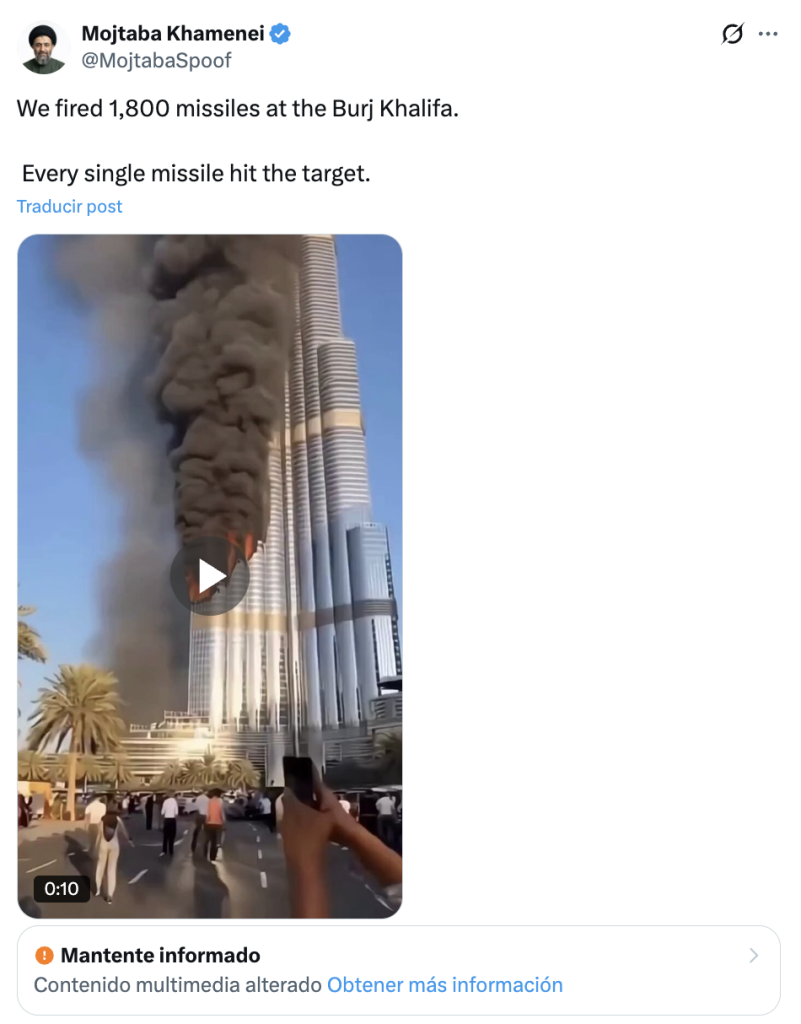 - Nota de Polígrafo: “Video shows Burj Khalifa, the world’s tallest building, being hit by Iranian missiles?”