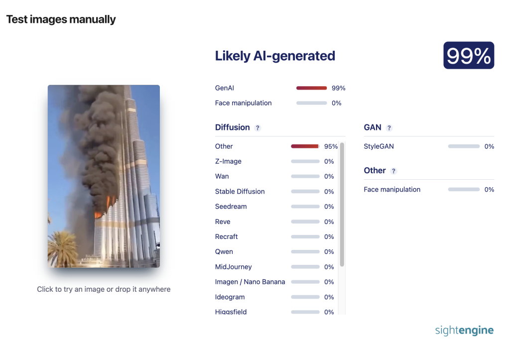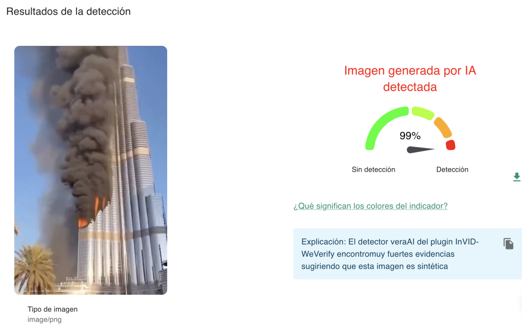 En tanto, Polígrafo aseguró que «un incendio de esta magnitud en el edificio más alto del mundo habría recibido una amplia cobertura mediática, lo que no ocurrió».