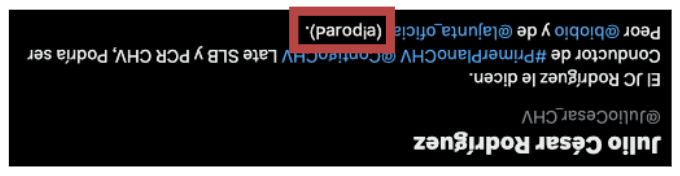En su descripción declara ser «El JC Rodríguez le dicen. Conductor de #PrimerPlanoCHV, @ContigoCHV, Late SLB y PCR CHV, Podría ser Peor @biobio y de @lajunta_oficial (ɐᴉpoɹɐꓒ)». Sin embargo, como se puede apreciar en la última parte de la descripción, está escrito —de forma invertida— que es una parodia.