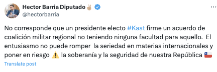 En esa línea, incluso el diputado Hector Barria (DC) insinuó que el presidente electo firmó el documento sin tener las facultades para ello, lo cual fue corregido por su par de RN, Diego Schalper.