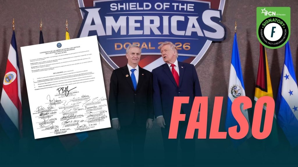 Fast Check califica el contenido como #Falso. Ni José Antonio Kast ni su futuro ministro de Defensa, Fernando Barros, firmaron el tratado durante el encuentro «Shield of the Americas» realizado en Estados Unidos. El documento oficial no incluye la firma de ninguno de los dos, y el propio Kast señaló que no lo suscribió debido a que aún no asume la Presidencia. Asimismo, aunque en un primer momento la Embajada de Estados Unidos indicó que el presidente electo había firmado el acuerdo, posteriormente corrigió la información y precisó que Kast solo participó en la instancia.