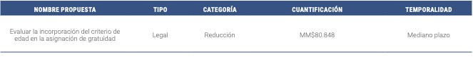 La segunda propuesta del informe plantea incorporar un criterio de edad para la asignación de la gratuidad. Se explica de la siguiente manera: