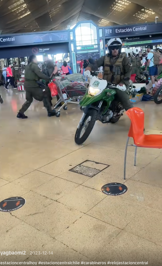 Un mismo video se ha compartido en redes sociales (1,2,3), con más de 200 mil visitas y 5 mil likes, que evidencia en sus capturas un operativo de carabineros decomisando mercadería ambulante al interior del andén, en Estación Central.