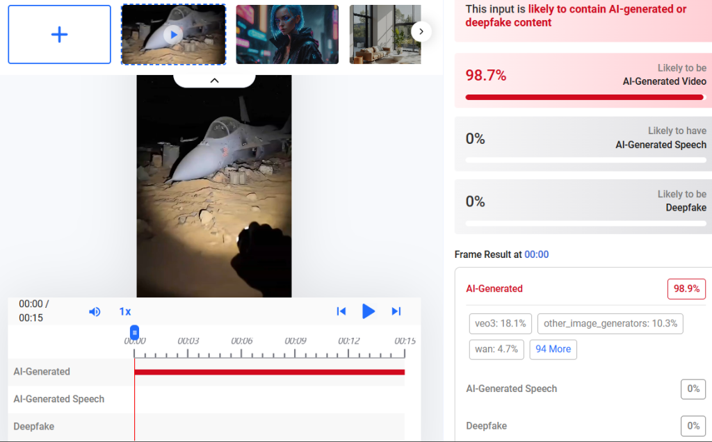 Al introducir el video a herramientas de detección de inteligencia artificial, los resultados evidencian que más de un 90% del contenido esta generado por software.