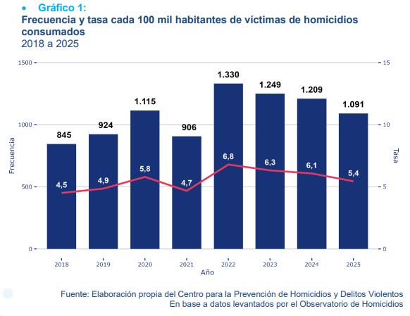 Esta base integra información proveniente de distintas fuentes oficiales —incluyendo a Fiscalía—, generando una cifra consensuada entre las instituciones que conforman el Observatorio de Homicidios del Ministerio de Seguridad Pública.
