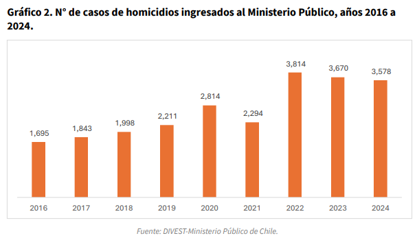 Según las cifras oficiales, las causas por homicidio ingresadas al ente persecutor se incrementaron en 77,9% desde 2018 hasta 2025, pasando de 1.998 casos a 3.555.