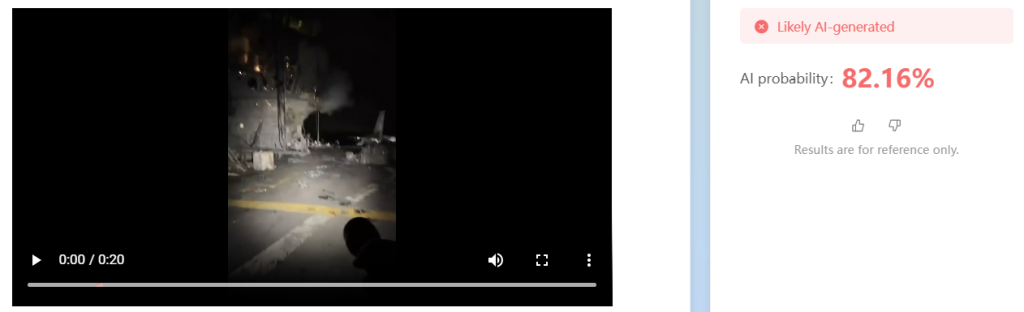Fast Check concluye que la inteligencia artificial gener贸 el video. Los detectores validan su origen sint茅tico y las inconsistencias visuales contradicen los reportes de los medios de comunicaci贸n. Por 煤ltimo, Fast Check ya ha verificado contenido similar durante la semana.