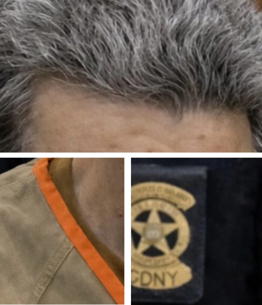 • Insignia incorrecta: el uniforme policial de fondo muestra “CDNY”, sigla que no corresponde a una institución real en ese contexto. La Corte del Corte del Distrito Sur de Nueva York posee la sigla “SDNY”.
