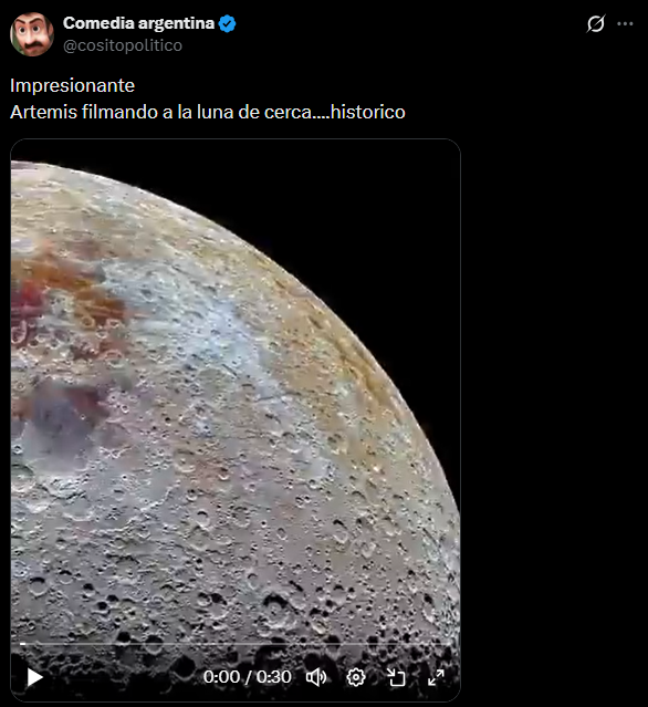 En redes sociales circulan (1,2,3) supuestas imágenes a color y en alta resolución de la luna, capturadas presuntamente por la nave espacial como parte de la misión Artemis II de la NASA.
