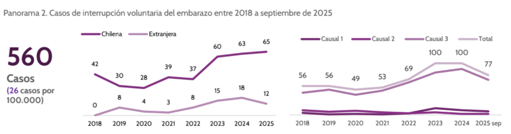 La Defensoría de la Niñez presentó la Nota Técnica N°6 sobre la interrupción voluntaria del embarazo (IVE) en niñas y adolescentes. Según datos del Ministerio de Salud, entre agosto 2018 y septiembre de 2025, un total de 560 niñas y adolescentes iniciaron este procedimiento en Chile. El informe destaca que el 86% de los casos corresponde a la causal de violación.