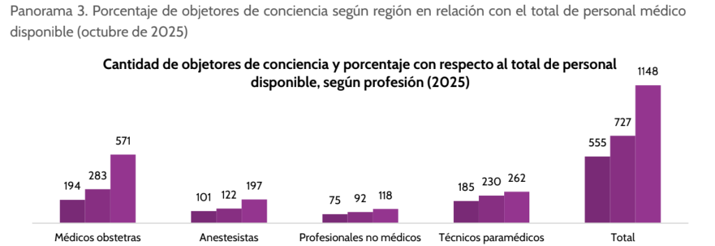 El informe identifica 20 desafíos estructurales que afectan el acceso y la implementación del procedimiento. Uno de los principales es la objeción de conciencia: a octubre de 2025, el sistema público registraba 2.430 profesionales objetores, de los cuales el 43% corresponde a médicos obstetras.