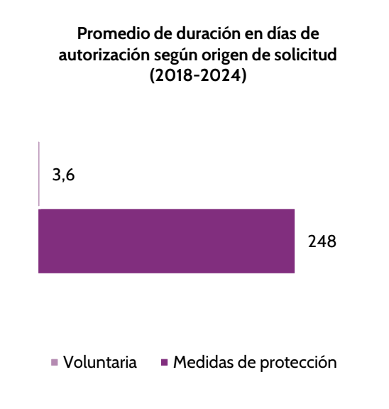 En el ámbito judicial, el informe advierte una respuesta tardía en los procesos de niñas bajo medidas de protección, cuya tramitación promedia 248 días. Si bien la autorización judicial específica para una IVE promedia 3,6 días en casos voluntarios, la excesiva duración de las medidas de protección generales puede retrasar la detección del embarazo.