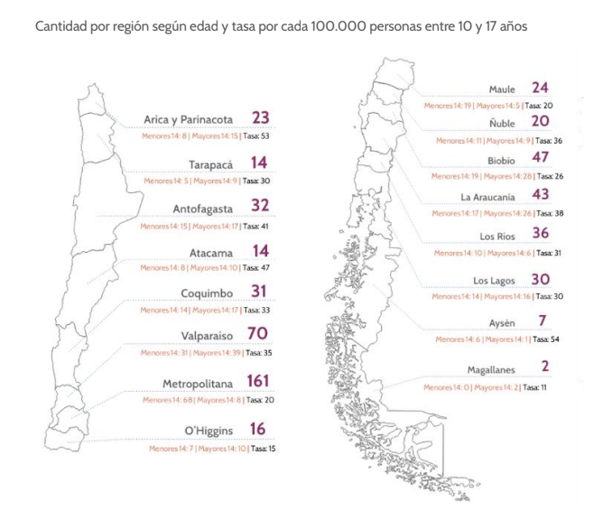 El acceso a este derecho presenta diferencias territoriales a nivel nacional. Al analizar la incidencia por cada 100.000 niñas y adolescentes, las regiones con mayores tasas son «Aysén (54), Arica y Parinacota (53), Atacama (47) y Antofagasta (41)».