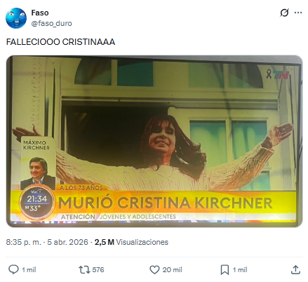 No existen reportes oficiales del deceso de Cristina Kirchner