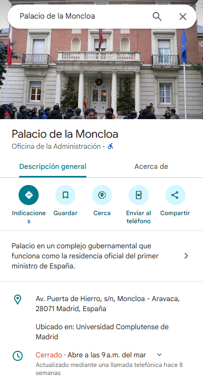 Además, se realizo la búsqueda en Google Maps del Palacio de Monclade, encontrando la dirección e imágenes del edificio publicadas que coinciden con el lugar.