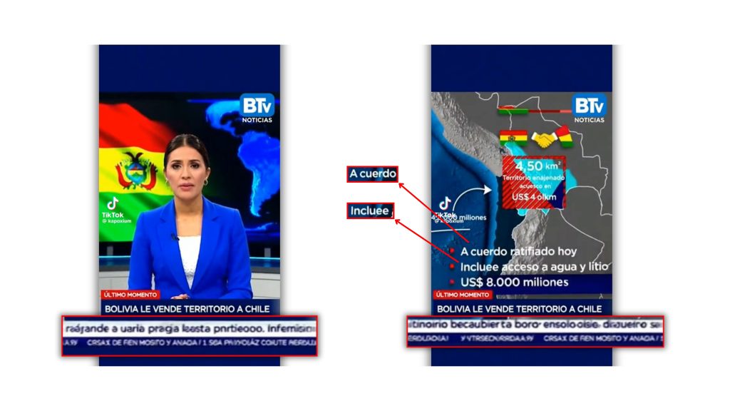 Circula en redes sociales un video atribuido al canal Bolivia TV, en el que se afirma que el gobierno boliviano vendió parte de su territorio a Chile.