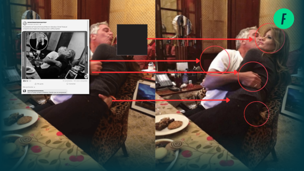 Fast Check calificó el contenido como #Falso. La imagen corresponde a un montaje digital basado en una fotografía real de los archivos de Jeffrey Epstein. Además, no existe evidencia de que Emmanuel Macron haya compartido esta imagen.