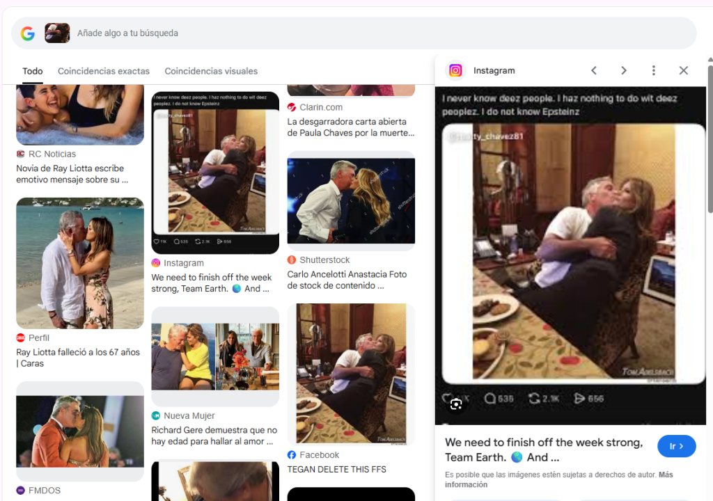 Al realizar una búsqueda inversa con Google Lens, se detectó que los resultados corresponden únicamente a publicaciones en redes sociales, y no existe una fuente original confiable del contenido.