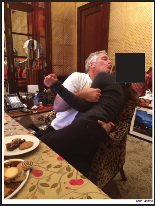 La imagen original identificada con ese código muestra a Jeffrey Epstein besando forzosamente a una mujer cuyo rostro fue ocultado, y se encuentra en la pagina 3354, en el conjunto de archivos EFTA01648070. En los documentos judiciales y evidencias oficiales, este tipo de intervención se denomina «redacted», es decir, información visual deliberadamente censurada para proteger la identidad de la persona involucrada.