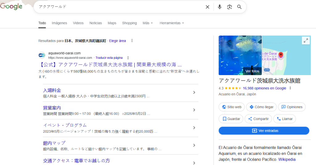 Al utilizar el traductor de google sobre las letras, confirmamos que el lugar corresponde al Acuario Aqua World Oarai.
