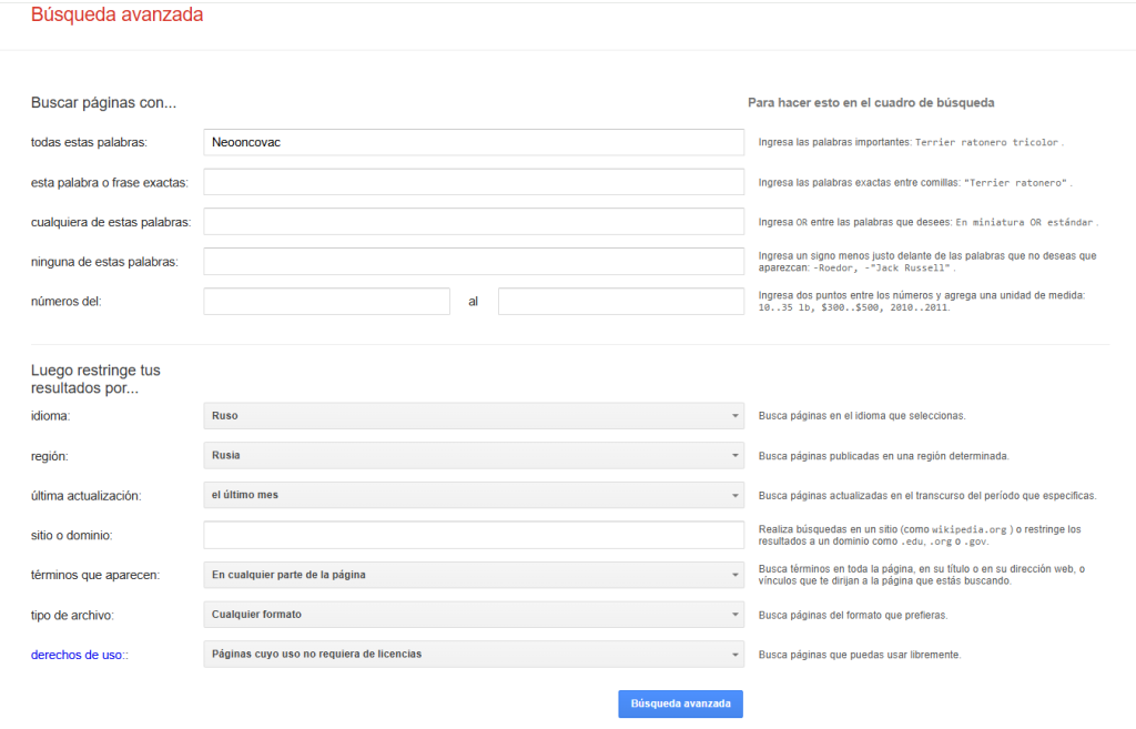 Fast Check realizó una búsqueda por la vacuna «Neooncovac» utilizando la herramienta de búsqueda avanzada de Google, encontrando una nota de prensa de un medio Ruso.