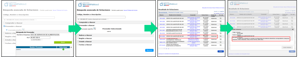 Se realizó una búsqueda por licitaciones en Mercado Público con el rut de la empresa.