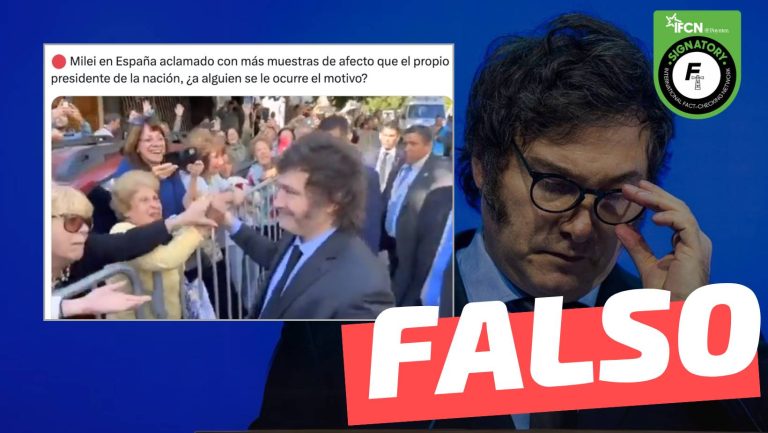Después de un polémico viaje a España del presidente argentino, Javier Milei, circula un video que mostraría cómo los europeos aclaman al mandatario trasandino. Sin embargo, el registro es anterior al viaje de Milei a Europa: fue grabado en Buenos Aires. Por esta razón, Fast Check CL calificó el contenido viral como falso.