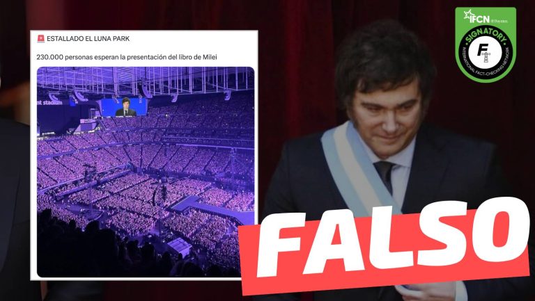 Después de la presentación del último libro del presidente Javier Milei en el Luna Park, circula una imagen que mostraría este mítico estadio de Buenos Aires repleto, con al rededor de 230 mil asistentes. Sin embargo, el contenido viral es falso: la imagen es de una gira de Taylor Swift y el Luna Park no tiene esa capacidad de asistentes.
