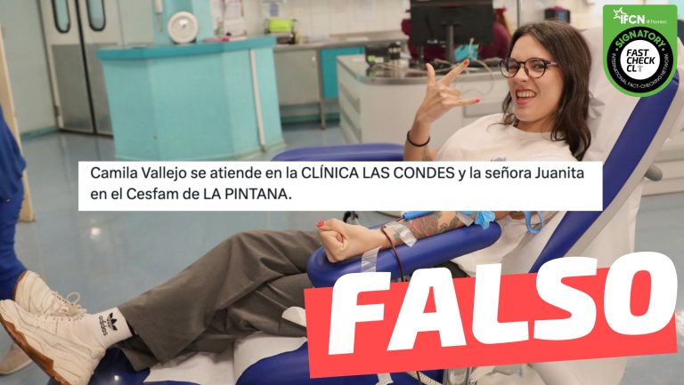 En las últimas horas ha circulado una imagen que muestra a la ministra Camila Vallejo atendiéndose, aparentemente, en la Clínica Las Condes. Sin embargo, esto es falso: la ministra está en la Casa del Donante, una institución dependiente del Ministerio de Salud.