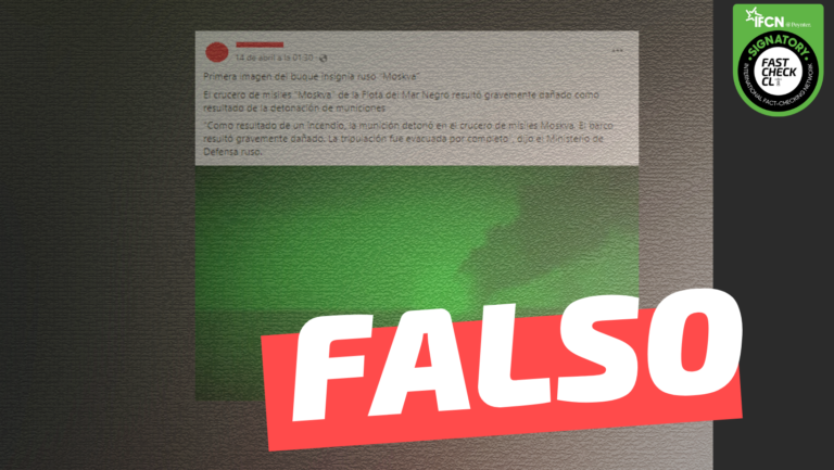 En diferentes plataformas se ha publicado la «primera imagen del buque insignia ruso Moskva», flota que se hundió en una tormenta de acuerdo a información entregada por agencias rusas. Lo que circula en redes sociales es falso. La fotografía utilizada como prueba no corresponde al incidente aludido, sino a un incendio de dos embarcaciones en el estrecho de Kerch durante enero de 2019.
