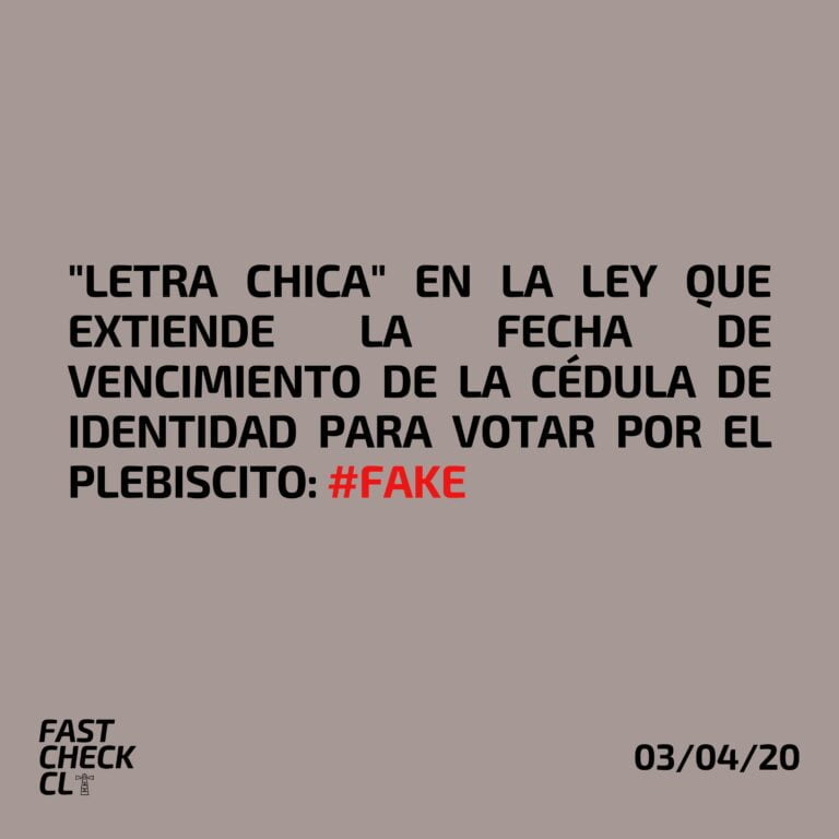 La información viralizada es falsa, porque la ley de extensión de la vigencia de la cédula de identidad no afecta a la ley electoral, la que define que se puede votar con un documento vencido hace menos de un año.